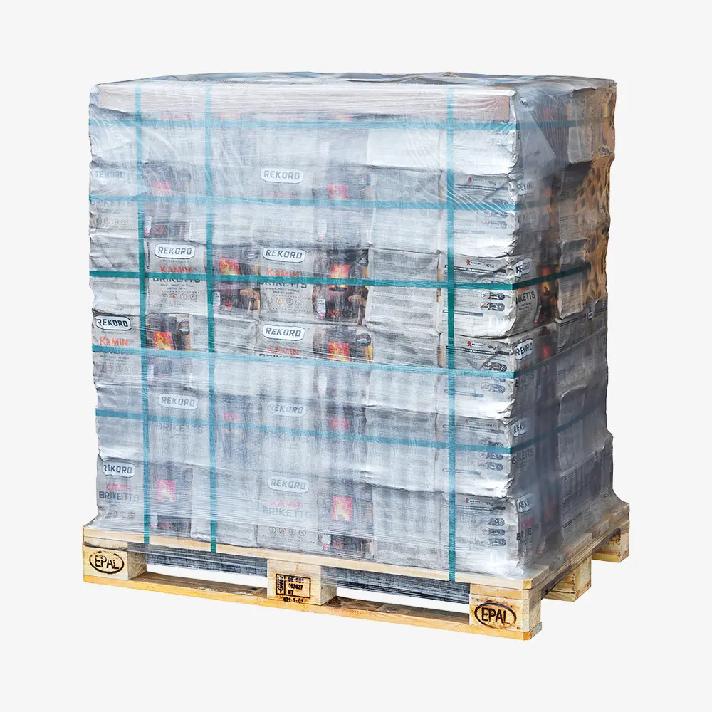 REKORD Braunkohlenbriketts 10 kg 90 Pakete à 10 kg kompakt auf Euro-Palette